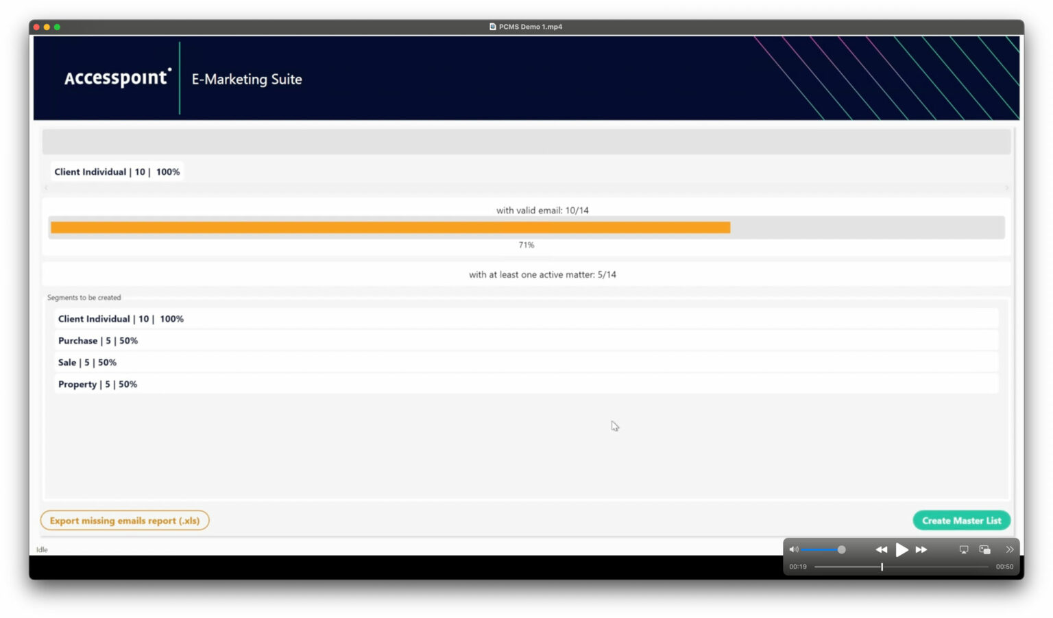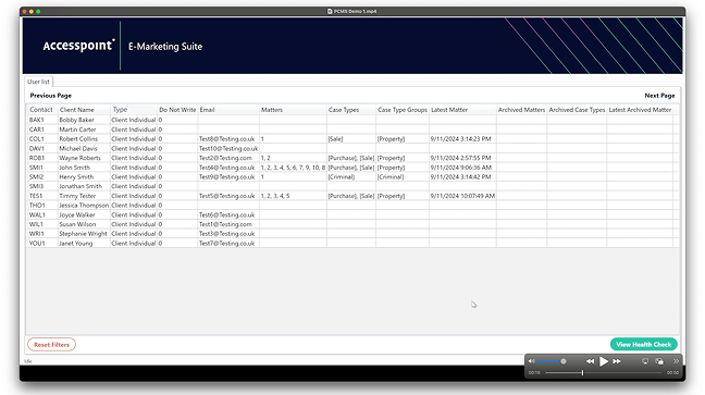 Once set up, the software runs in the background and automatically synchronises client contact information (including First Name, Last Name, Email, Matter Type Codes, and Date of Last Matter) between your PCMS and your chosen email marketing platform. Any changes made in your PCMS, such as new contacts or updates to existing information, are instantly reflected in your email marketing lists.
