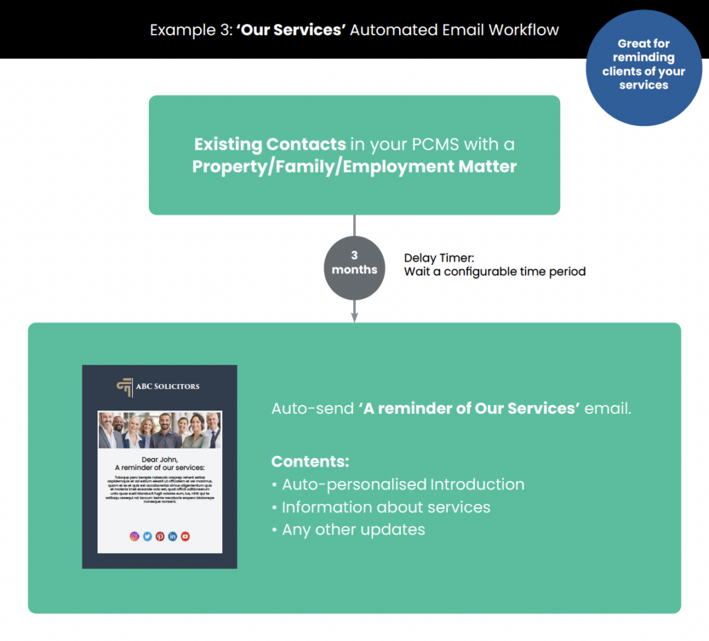 The E-Marketing Suite enables you to fully utilise the automation features of Campaign Monitor or Mailchimp. You can create pre-defined email templates and set up automated triggers based on client actions or specific timeframes. For example, you can automatically send welcome emails to new contacts, follow-up emails after service milestones, or periodic reminders about your services.